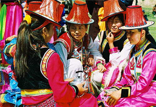 Yugur nationality has a long history that can be traced back to the year 3 B.C. They live in the mountainous areas, mainly by stock raising, and are typical nomads. Now about 90 percent of the total Yugur people live in Sunan Yugur Autonomous County in Gansu Province. The Yugur people believe in Lamaism, the Yellow Religion. Other forms of spirit worship are also cherished by them, such as an original belief called the God Khan.