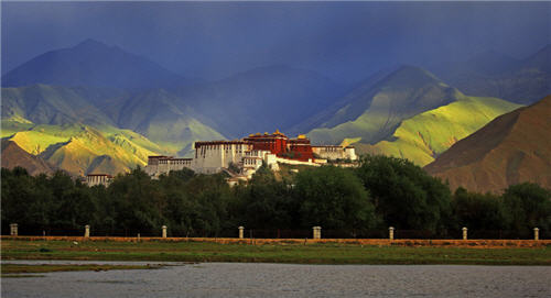 In the field of the arts, Tibetan calligraphy values strictness and delicateness, be it on steles or sutras; the Thangka and other Buddhist pictures, with fluent lines and bright colors, depict figures vividly; their architecture, like the Potala Place and Jokhang Temple, is charming and brilliant; the Zang people are famous for expressing their feelings through song and dance, notably the step dance and the masked Tibetan opera.