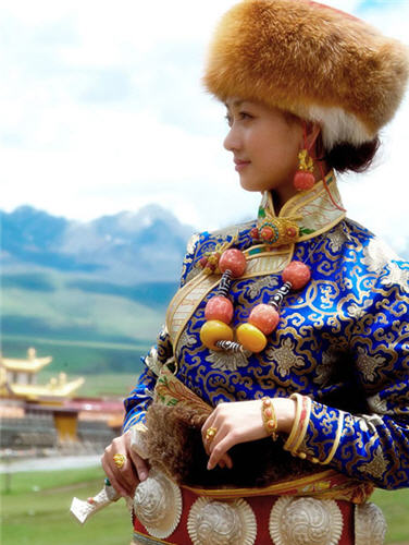 In general the Zang men wear plaits on the head and women wear them on the shoulders. They all wear gowns with long sleeves. When they are dancing, their sleeves look wings flapping in the air. The monks wear cassocks whose colors vary according to their particular sect of Tibetan Buddhism.