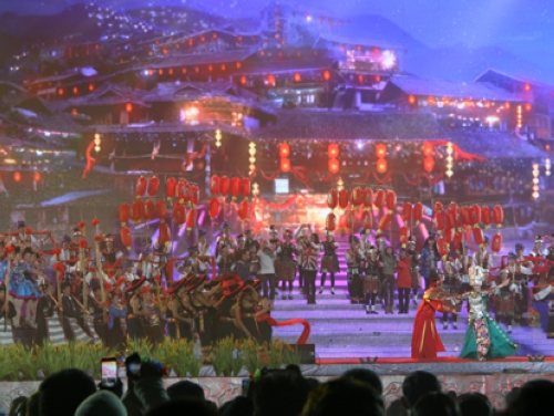 The events began with a live performance on the lake at the Ethnic Culture Park in the host city of Kaili. The performance, inspired by the Miao, Dong and Yao cultures, featured native customs and presented the cultural richness of Qiandongnan to the audience.